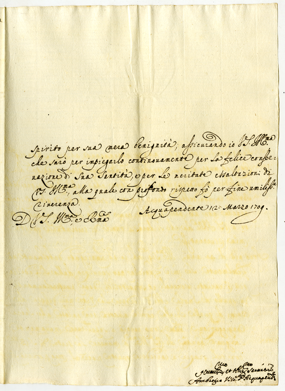 Lettera del vescovo di Acquapendente a un prelato (1709 marzo 12)