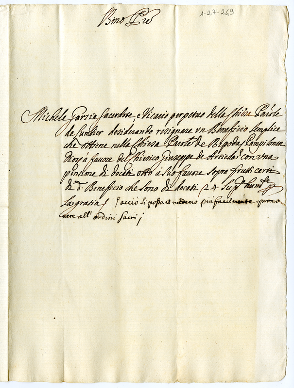 Lettera del sacerdote Michele Garsia al Santo Padre (1600-1700)