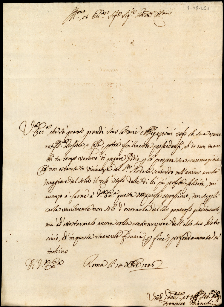 Lettere ricevute in Urbino dal Signor Principe Orazio Albani ultimo di questo nome nell'anno 1746