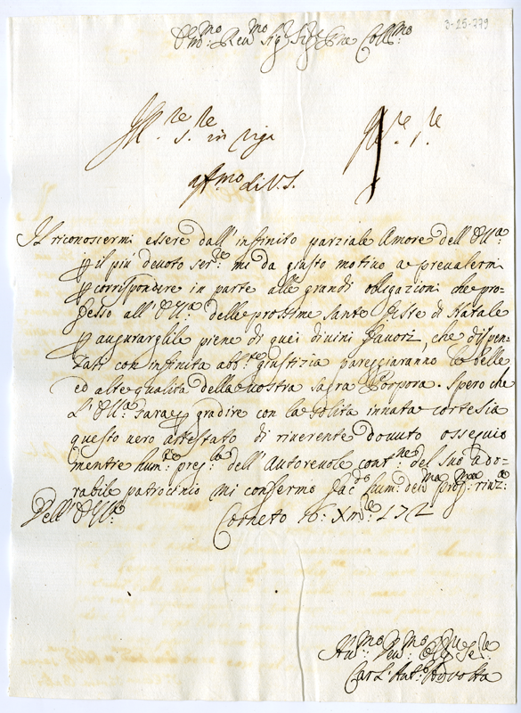 Lettera di Carl'Antonio Arrolta al cardinale Annibale Albani (1721 dicembre 16)