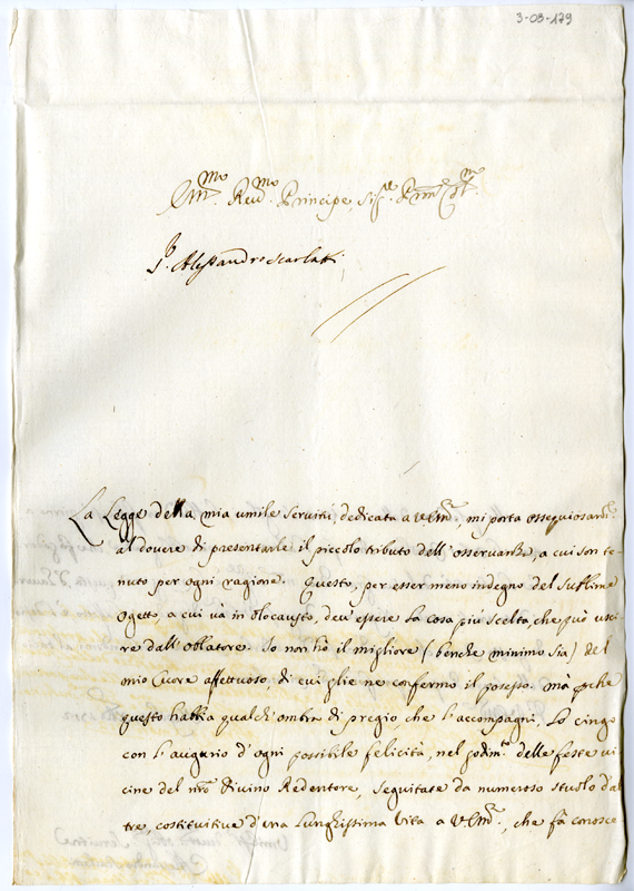 Lettera di Alessandro Scarlatti al cardinale Annibale Albani (1712 dicembre 17)