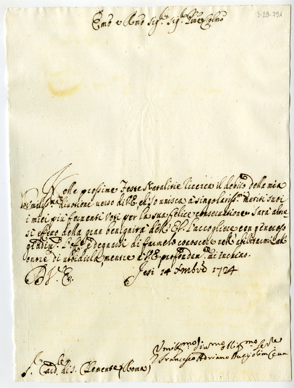 Lettera di Francesco Adriano Ceva al cardinale Annibale Albani (1724 dicembre 14)