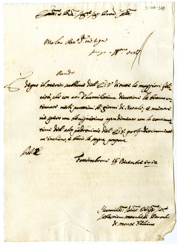 Lettera di Sebastiano Marchetti al cardinale Annibale Albani (1712 dicembre 16)