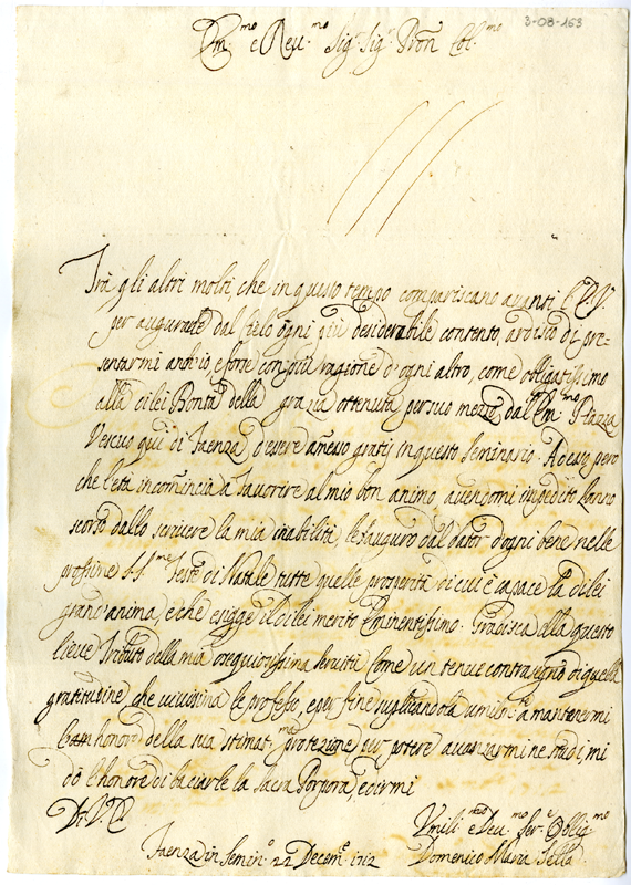 Lettera di Domenico Maria Sella al cardinale Annibale Albani (1712 dicembre 22)