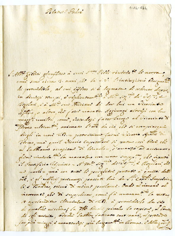 L'abate Giuseppe Maria Giberti chiede al pontefice di ottenere un qualche incarico