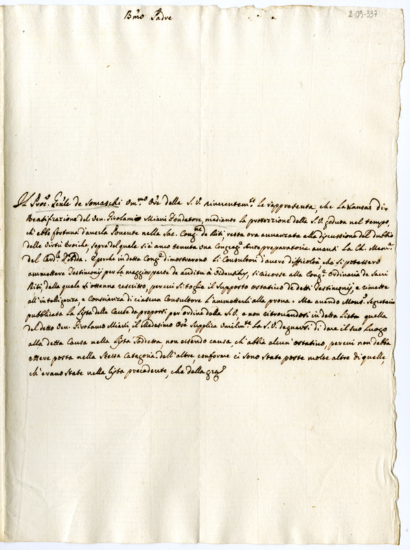 Lettera del padre generale dei somaschi postulatore della causa di beatificazione del venerabile Santo di Dio Girolamo Miani (1700-1721)