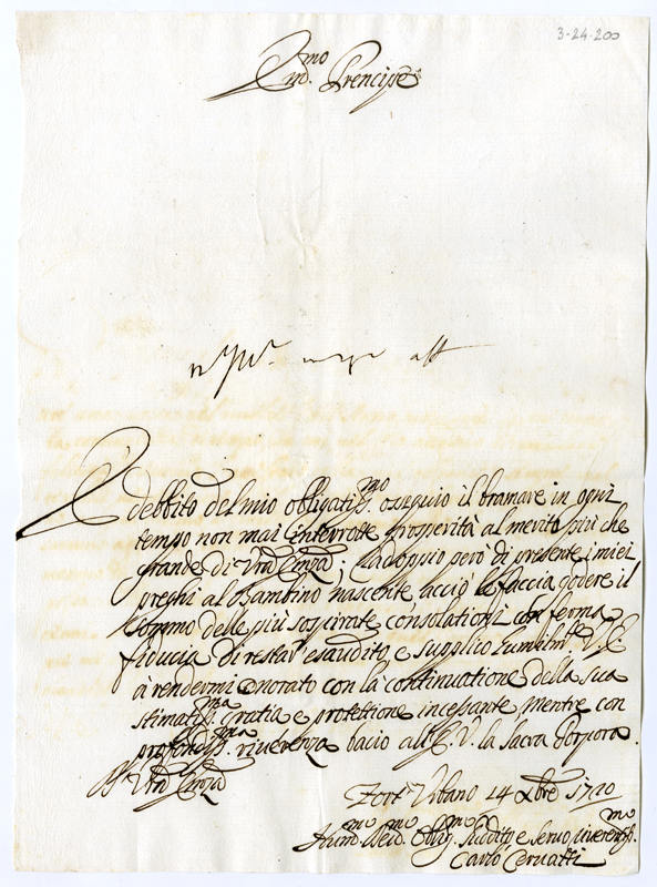 Lettera di Carlo Cervatti al cardinale Annibale Albani (1720 dicembre 14)