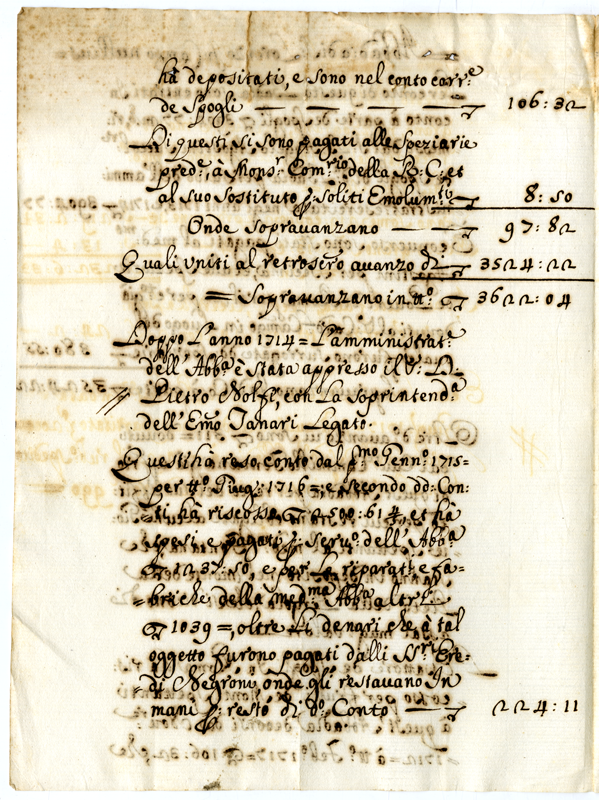 Entrate e pesi dell'Abbazia di San Lorenzo in Campo (1700-1721)
