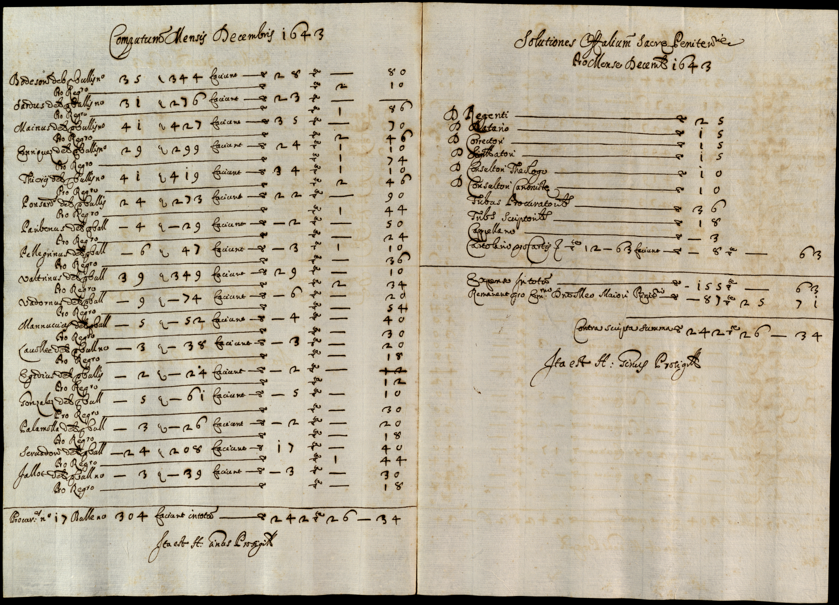 Note contabili relative agli interessi della Penitenziaria spettanti al cardinale S. Onofrio