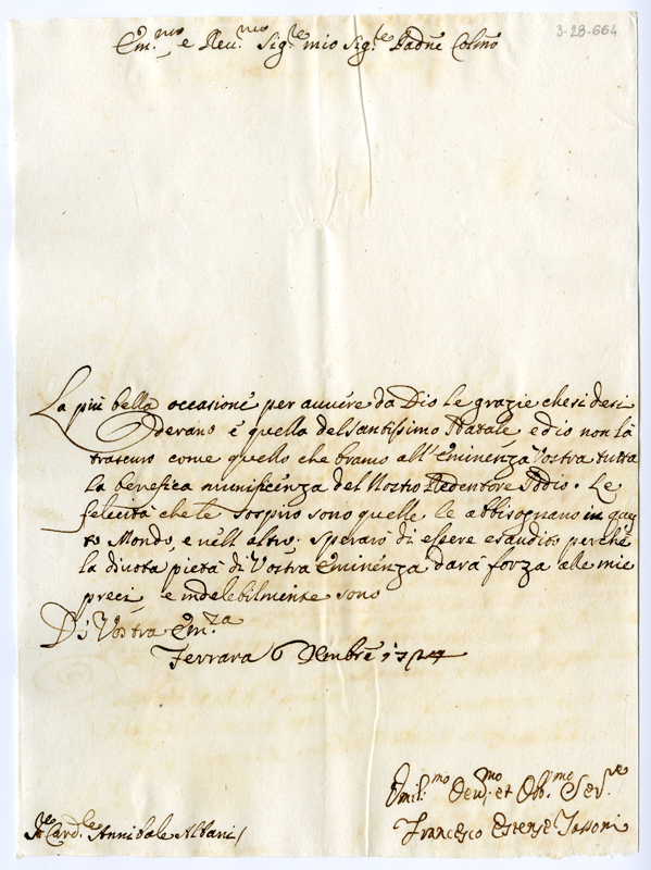 Lettera di Francesco Estense Tassoni al cardinale Annibale Albani (1724 dicembre 6)