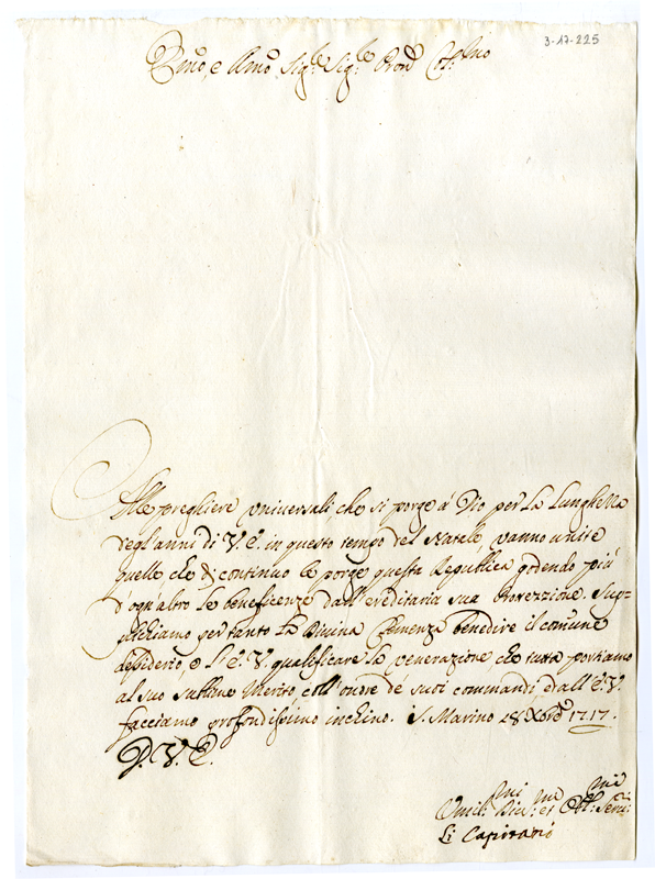 Lettera dei capitani di San Marino al cardinale Annibale Albani (1717 dicembre 18)