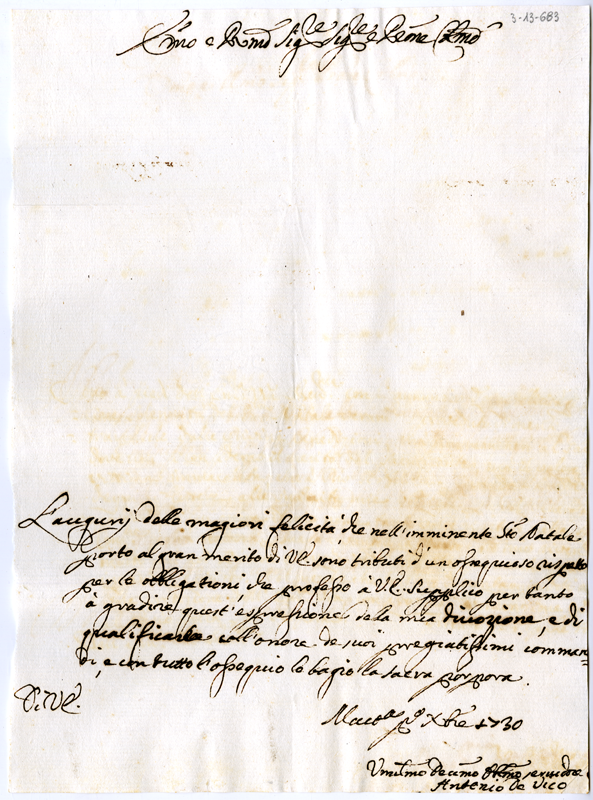 Lettera di Antonio da Vico al cardinale Annibale Albani (1730 dicembre 1)