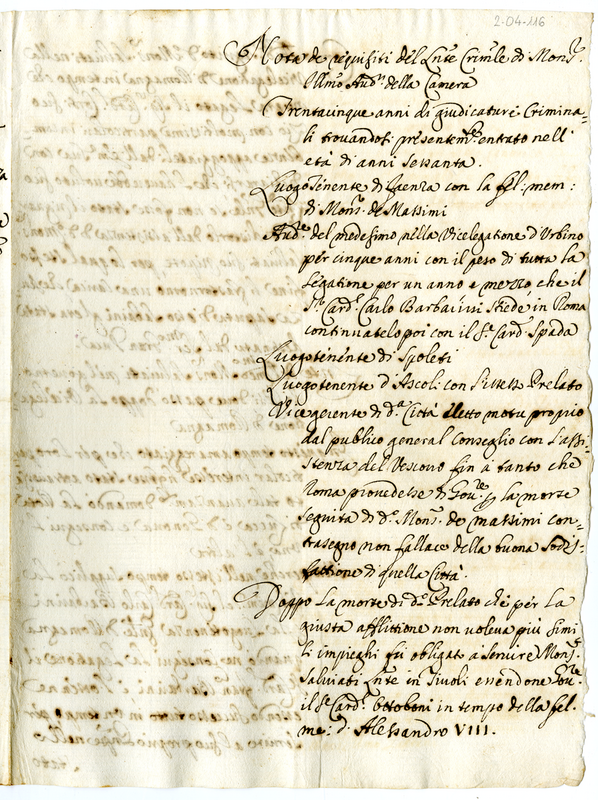 Nota de requisiti del luogotenente criminale di monsignor illustrissimo And. della Camera