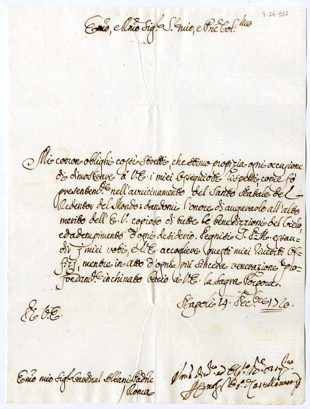 Lettera del gonfaloniere di Castellaneta al cardinale Annibale Albani (1720 dicembre 14)