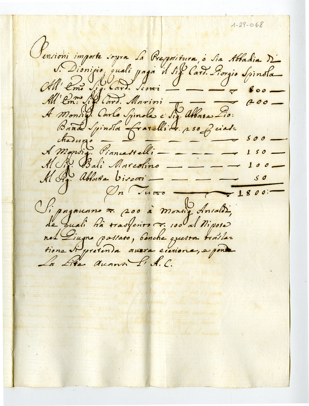 Pensione imposte sopra la prepositura, o sia abbadia di S, Dionisio (1720)