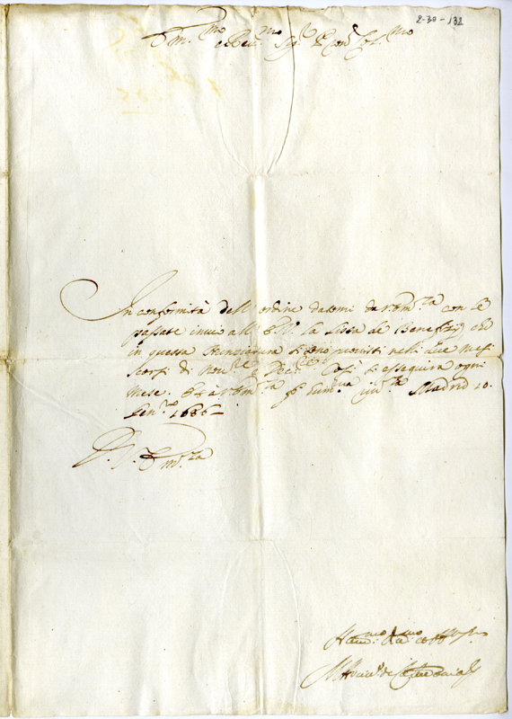 Lettera di trasmissione al Nunzio di Spagna su una nota di benefici spagnoli concessi (1686 gennaio 10)
