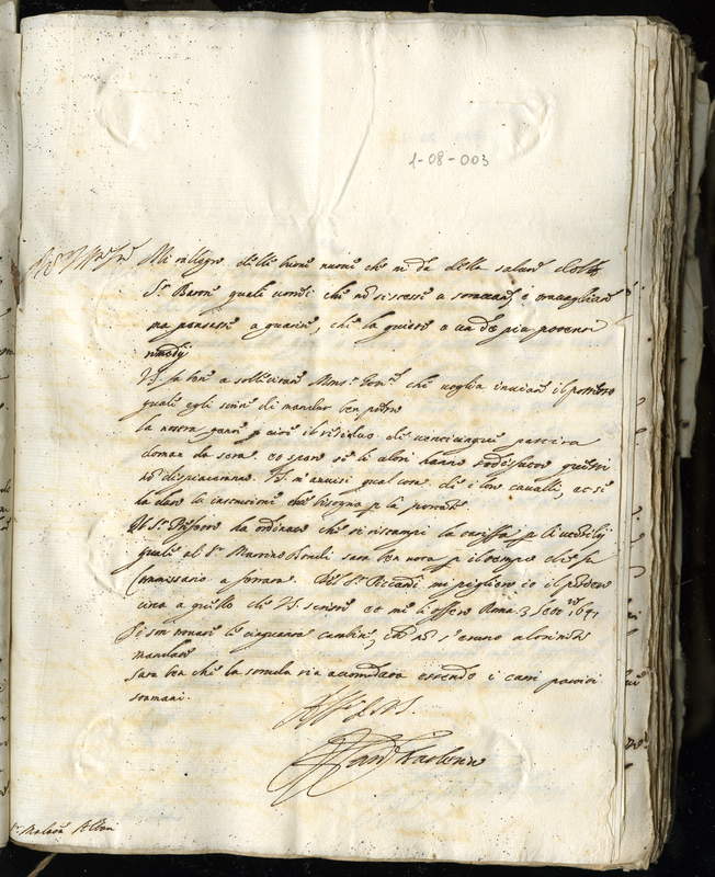 Il cardinale Barberini invia disposizioni varie