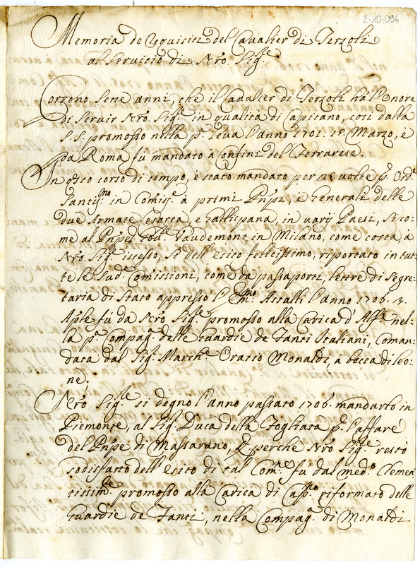Memoria de requisiti del Cavalier di Terzoli al servizio di Nostro Signore (1707)