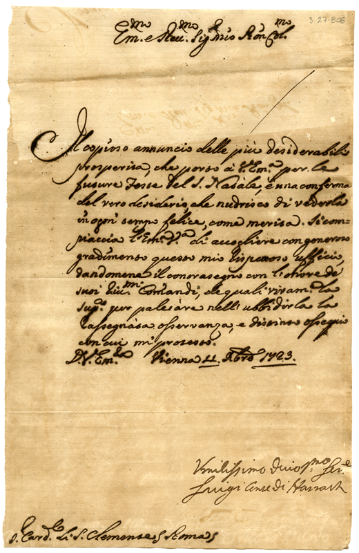 Lettera di Luigi conte di Harrach al cardinale Annibale Albani (1723 dicembre 11)