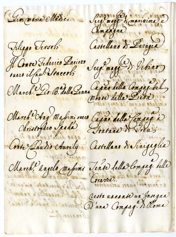 Elenco di Governatori e di Ufficiali con breve giudizio (1700-1721)