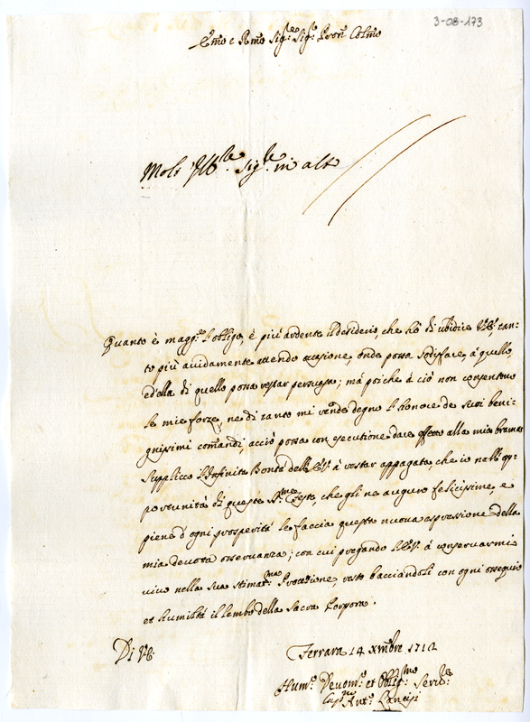 Lettera di Antonio Lancisi al cardinale Annibale Albani (1712 dicembre 14)