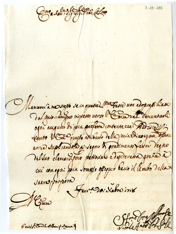 Lettera di Vitale Antonio dal Sale al cardinale Annibale Albani (1718 dicembre 14)