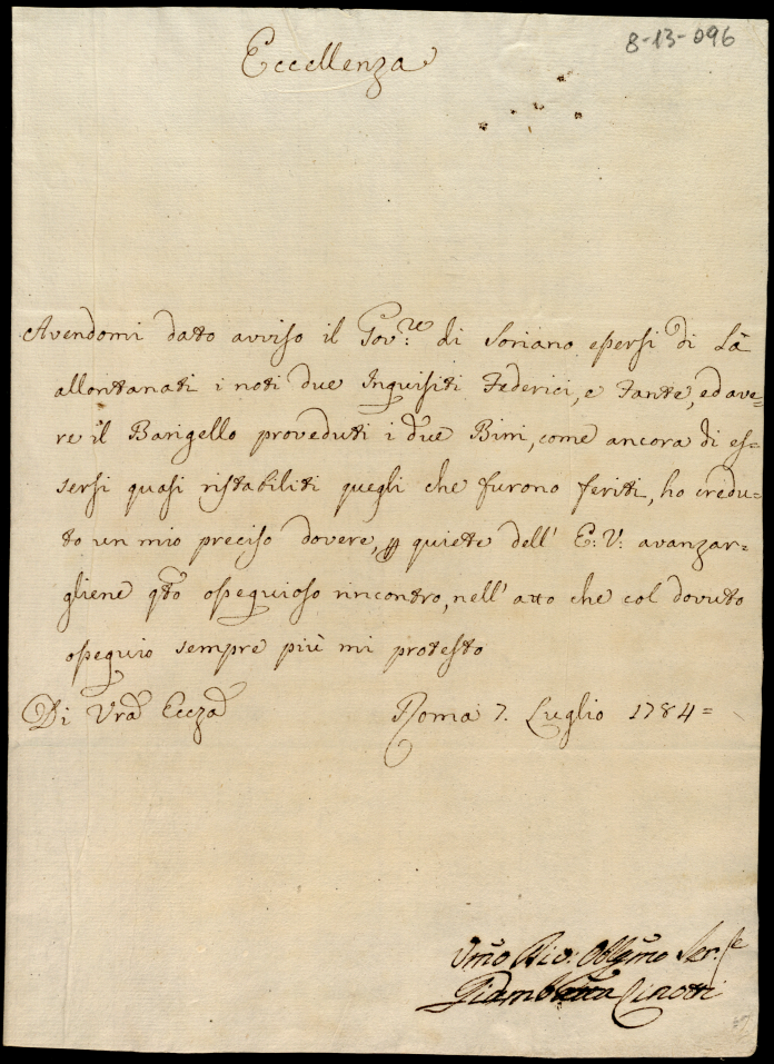 Lettere diverse ricevute in Colbordolo, Pesaro e Senigallia nel 1784