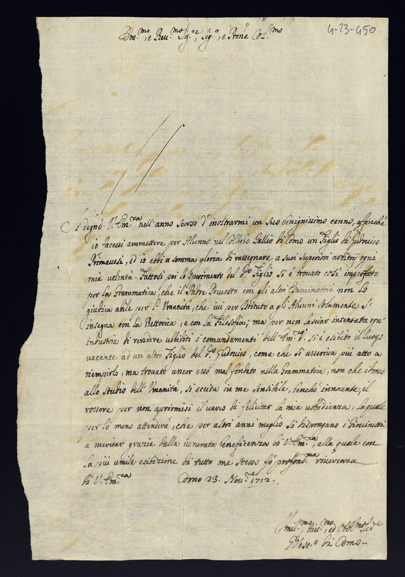 1712. Lettere di complimento e di negozio. Semestre secondo