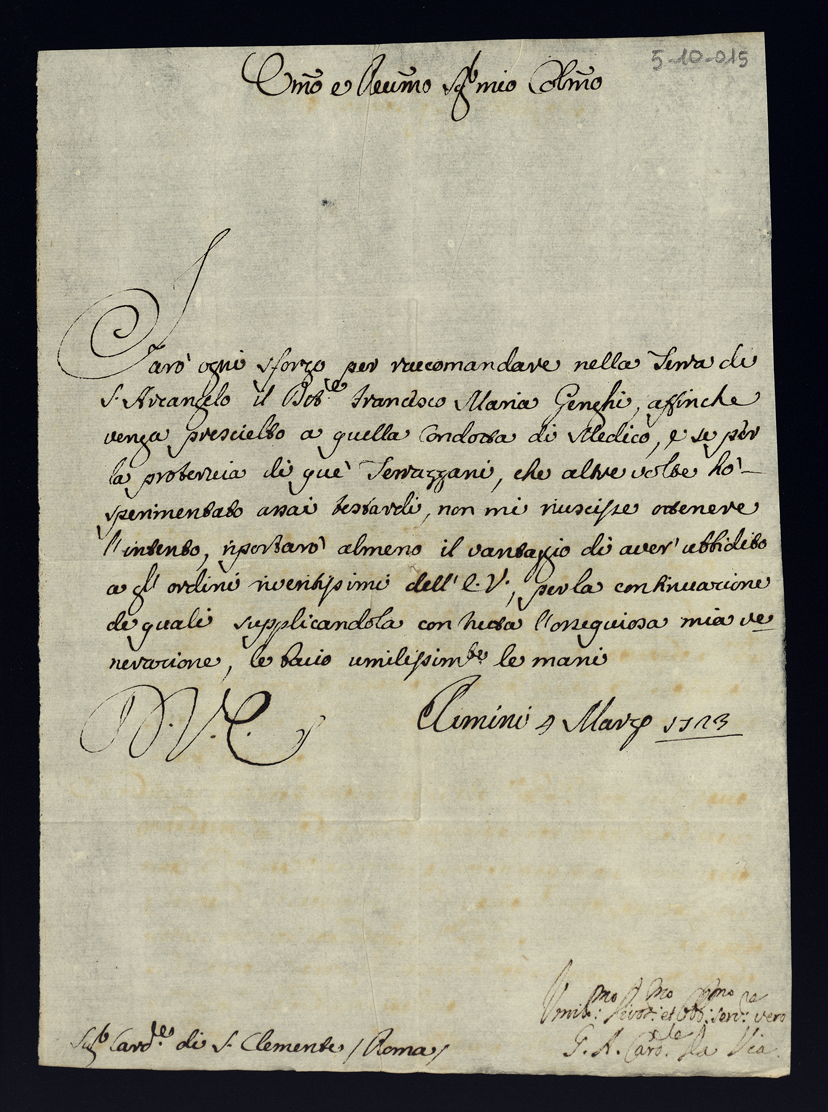 Risposte a lettere di raccomandazioni dell'anno 1723