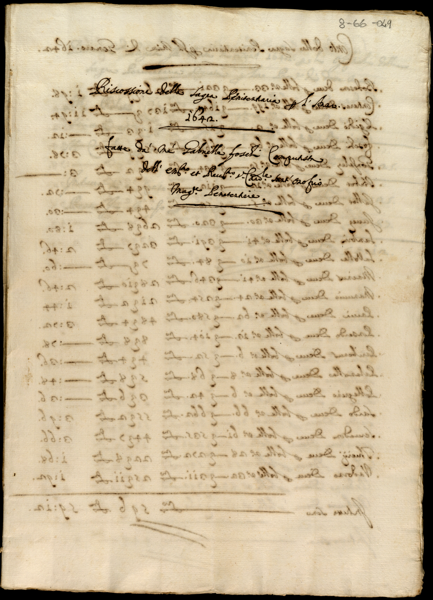 Note contabili relative agli interessi della Penitenziaria spettanti al cardinale S. Onofrio
