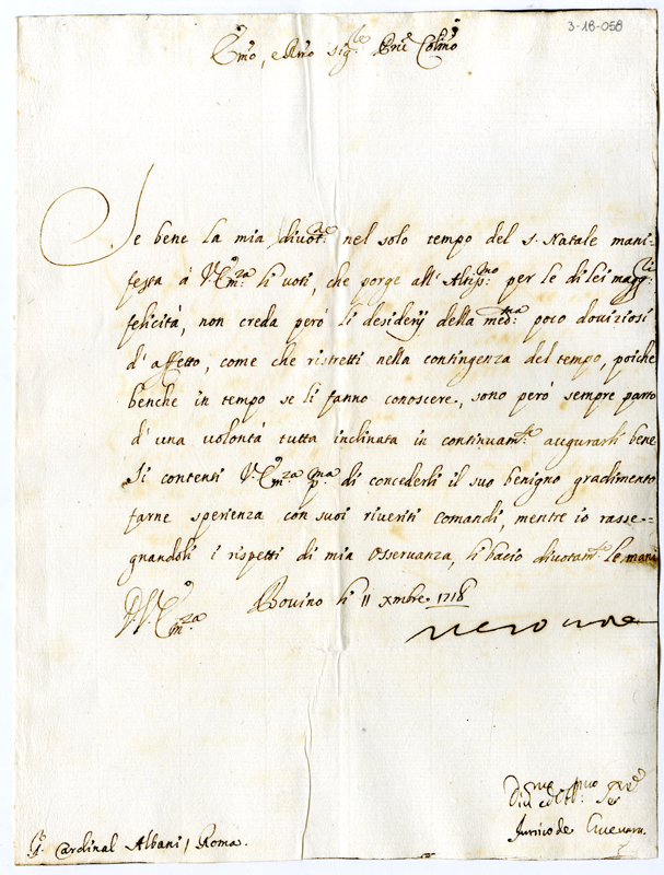 Lettera di Inigo de Guevara al cardinale Annibale Albani (1718 dicembre 11)