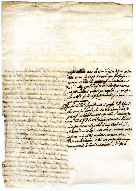 Lettera di un cardinale a papa Clemente XI (1700-1721)