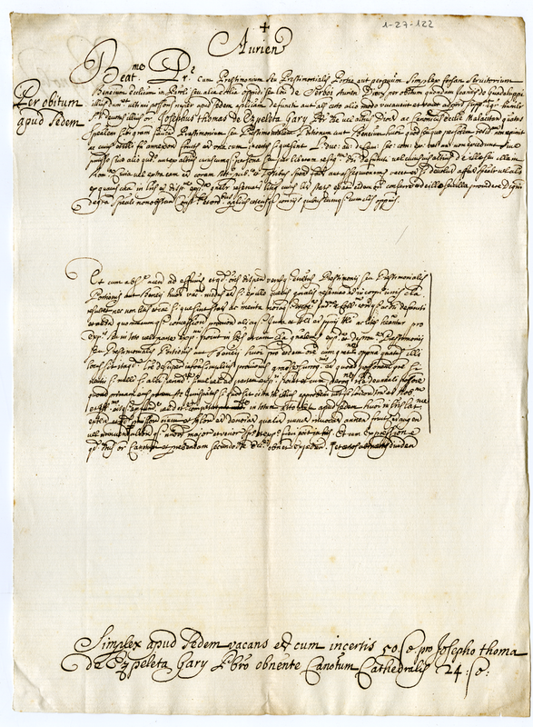 Su un beneficio vacante nella regione Callecia di Portogallo a favore del presbitero Giuseppe Tommaso de Ezpeleta Gary