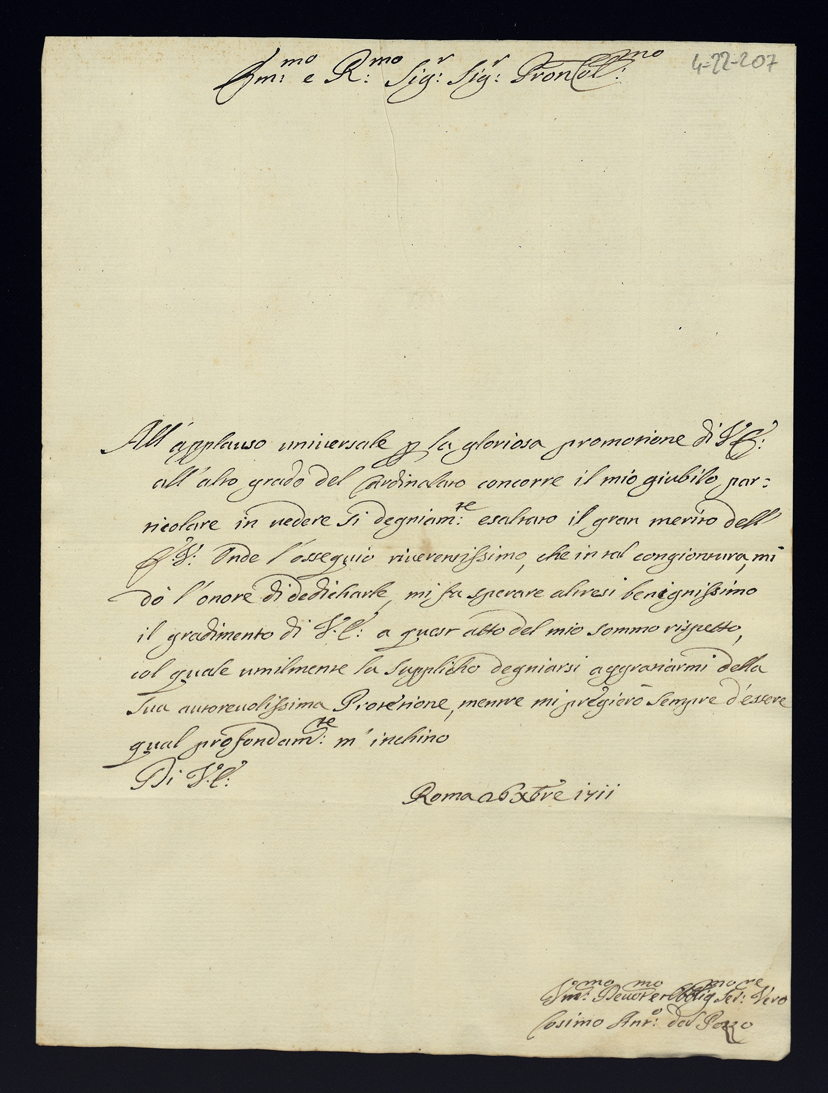 Lettere di congratulazioni per la promozione di Sua Eccellenza al Cardinalato
