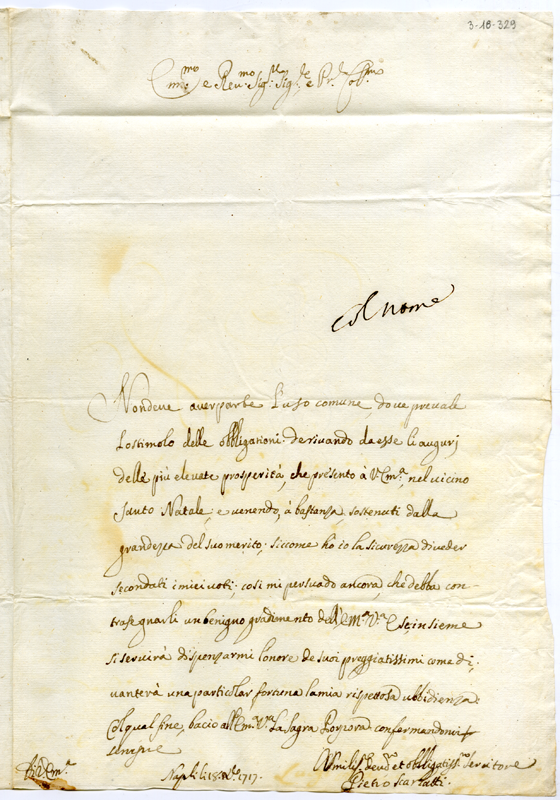 Lettera di Pietro Scarlatti ad Annibale Albani (1717 dicembre 18)
