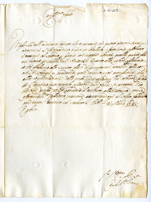 Lettera di Carlo Albani a Giovanni Francesco Albani (1681 marzo 31)