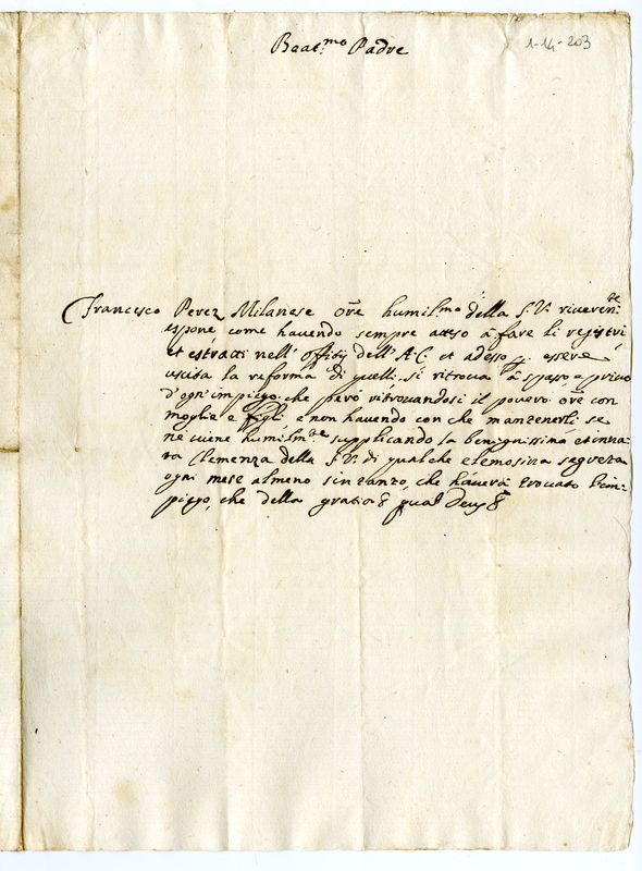 Supplica di Francesco Perez a Clemente XI