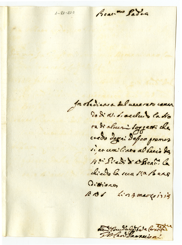 Lettera del cardinale Paracciani a Clemente XI (1713 marzo 24)