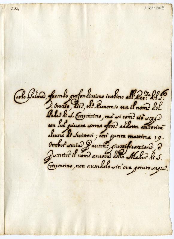 Richiesta ad Orazio Albani sul nome della madre di San Crescentino (1712)