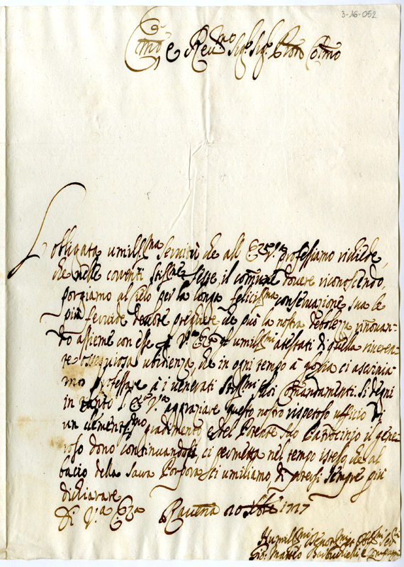Lettera di Giovanni Matteo Barbuchielli e compagni al cardinale Annibale Albani (1727 dicembre 20)