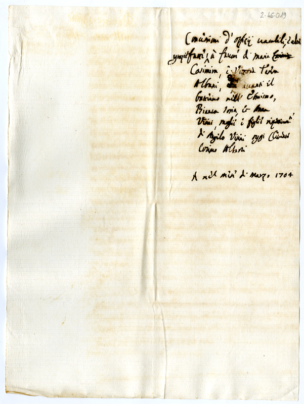 Concessioni d'officii vacabili e altre grazie fatte nel mese di marzo 1704 a favore di Maria Casimira e Vittoria Teresa Albani, avanti il battesimo nell'ebraismo, Bianca Sosia et Anna Vicini, moglie e figli e nipoti viventi di Angelo Vicini oggi ... Cosimo Altani