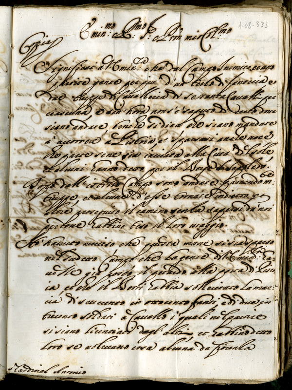 Copia di lettera al cardinale Barberini Antonio seniore (1643 ottobre 5)