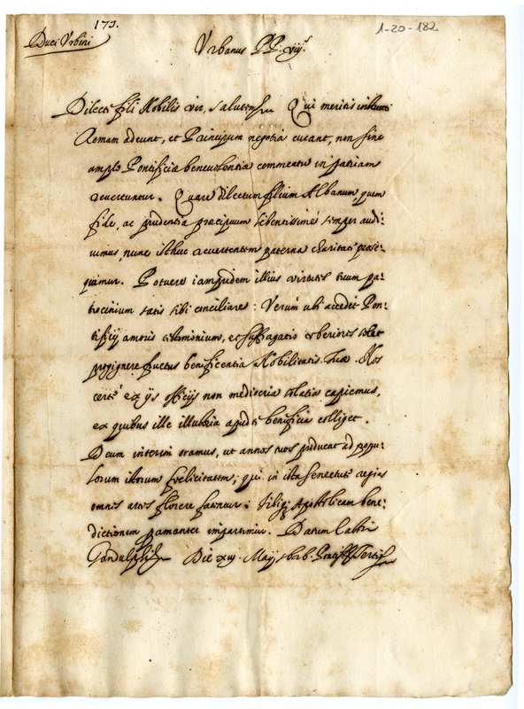 Breve di Urbano VIII al duca di Urbino (1626 maggio 13)