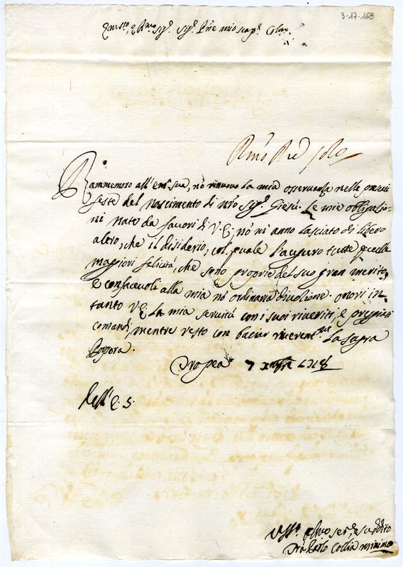 Lettera di Carlo Collia al cardinale Annibale Albani (1718 dicembre 7)