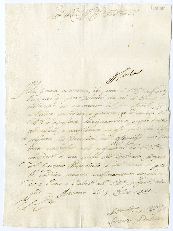 Lettera di Lorenzo Cadolini al cardinale Annibale Albani (1721 dicembre 5)