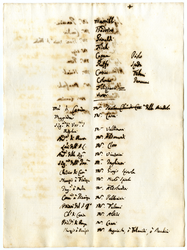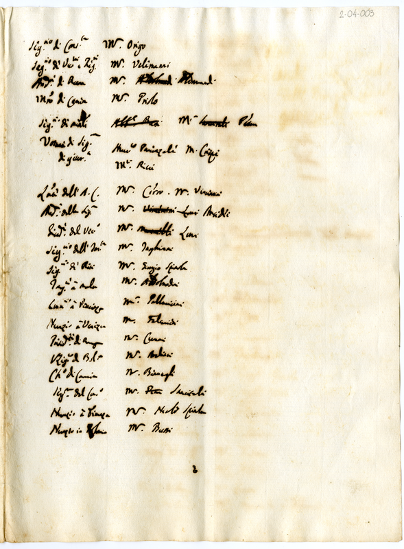 Lungo elenco di nominativi e nota manoscritta di Clemnete XI (1700-1721)