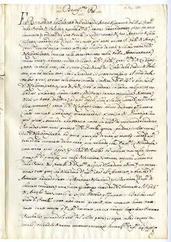 Supplica di fra Bernardino da Palermo a Clemente XI