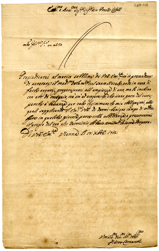Lettera di Pietro Cornacchi al cardinale Annibale Albani (1712 dicembre 17)