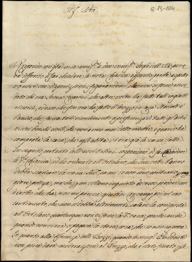 Lettere diverse ricevute in Colbordolo, Pesaro e Senigallia nel 1784