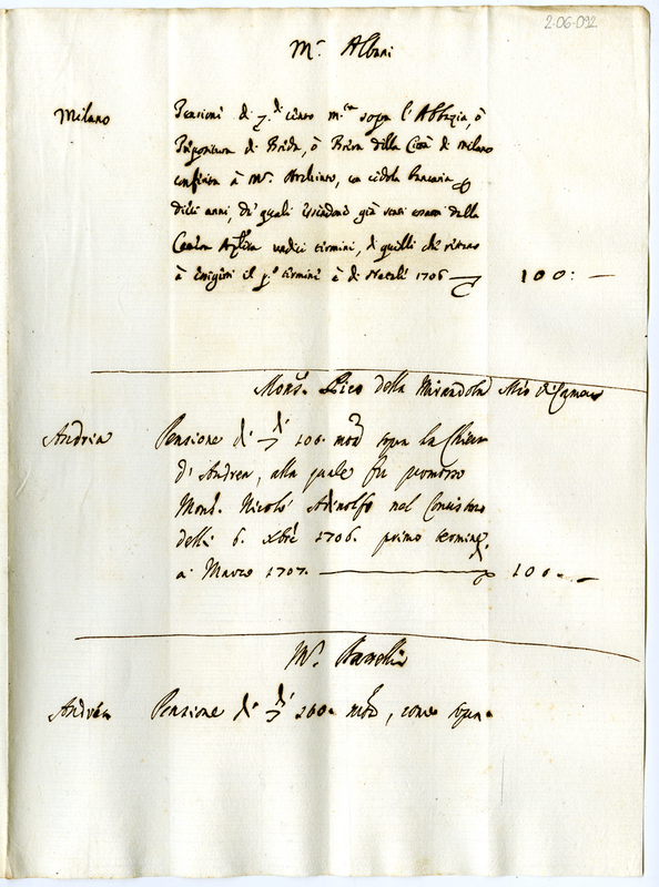 Pensioni di Monsignor Albani, Monsignor Pico della Mirandolo e Monsiognor Battelli (1700-1721)